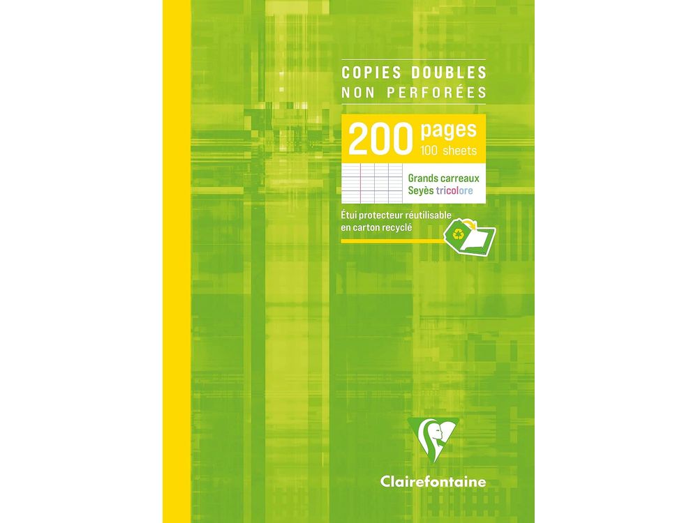 The Clairefontaine 5721C is a pack of 200 unpunched pages (100 sheets), double-sheet, A4 90g white vellum paper. These sheets feature Seyès ruling (French ruling), designed for handwriting improvement, and are typically used in schools for writing, notes, and exams.