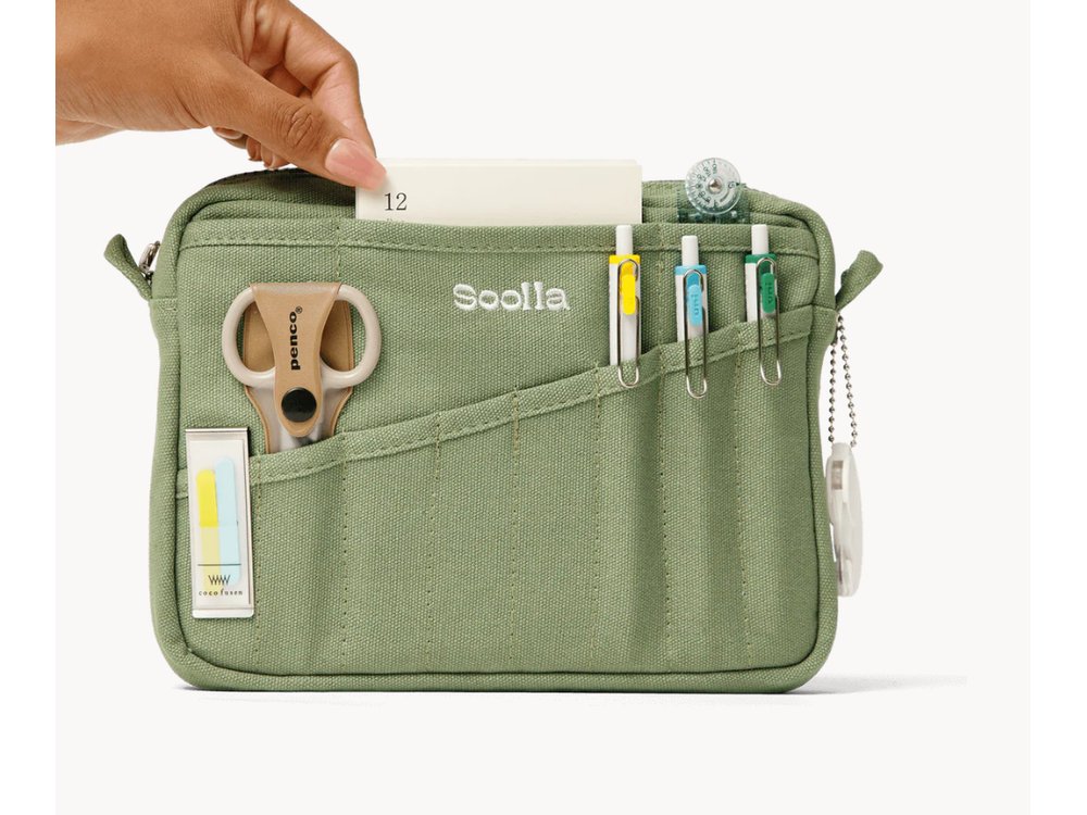 - Convertible stationery pouch design — hooks for your own strap or a Soolla strap (coming soon)