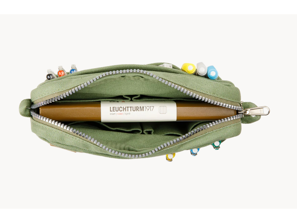 Inside, 20 pockets make space for art supplies, stationery essentials, and an A5 notebook, all secured by a smooth YKK zipper. Sized to fit within larger bags or carry as a standalone stationery pouch, it’s organization that moves with you.